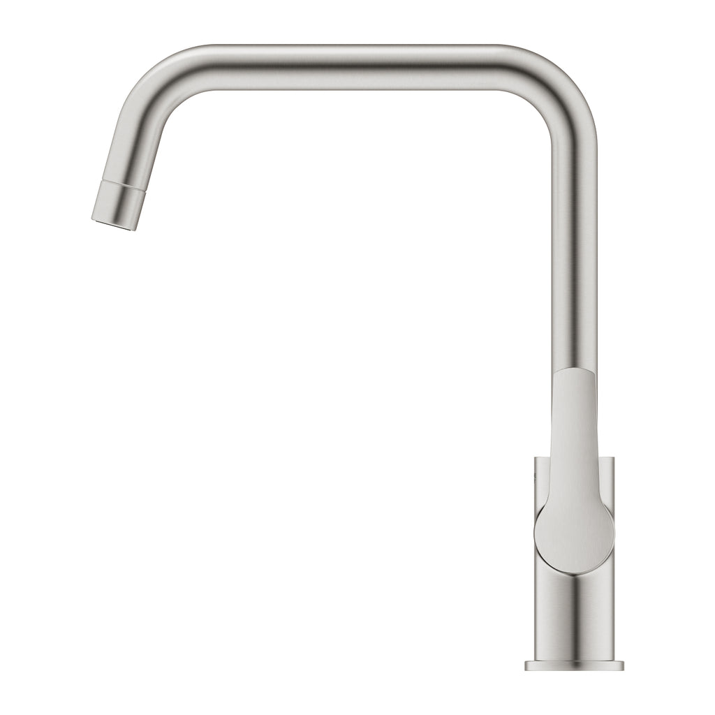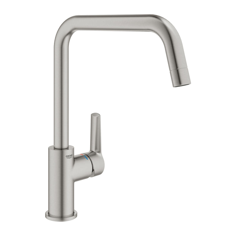 Kjøkkenbatteri ettgreps høy børstet stål - Grohe Start gir deg et moderne og funksjonelt kjøkkenbatteri som kombinerer kvalitet og elegant design. Med sin høye tut og børstede stålfinish passer det perfekt til de fleste kjøkken.