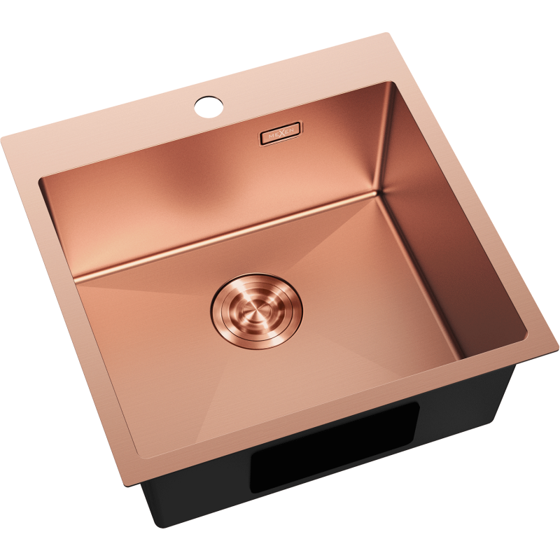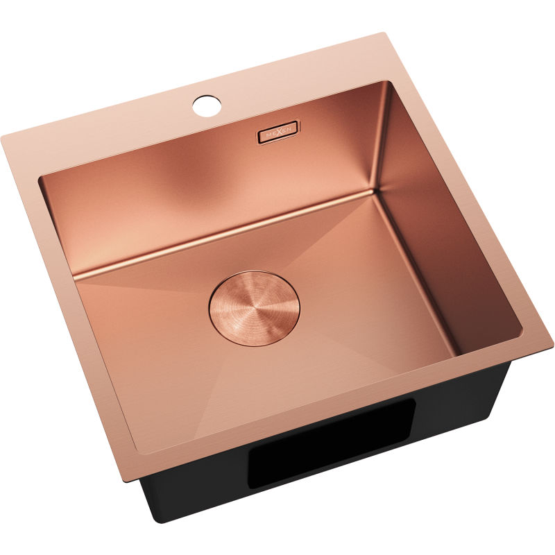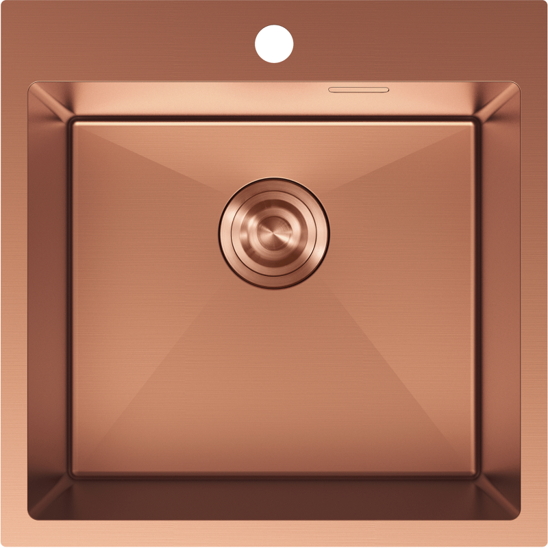 Mexen Solix kjøkkenvask i kobberfarge (500 x 500 mm) gir deg avrundede hjørner som gjør rengjøring enklere. Vasken passer standard utskjæring og monteres enkelt i benkeplate.